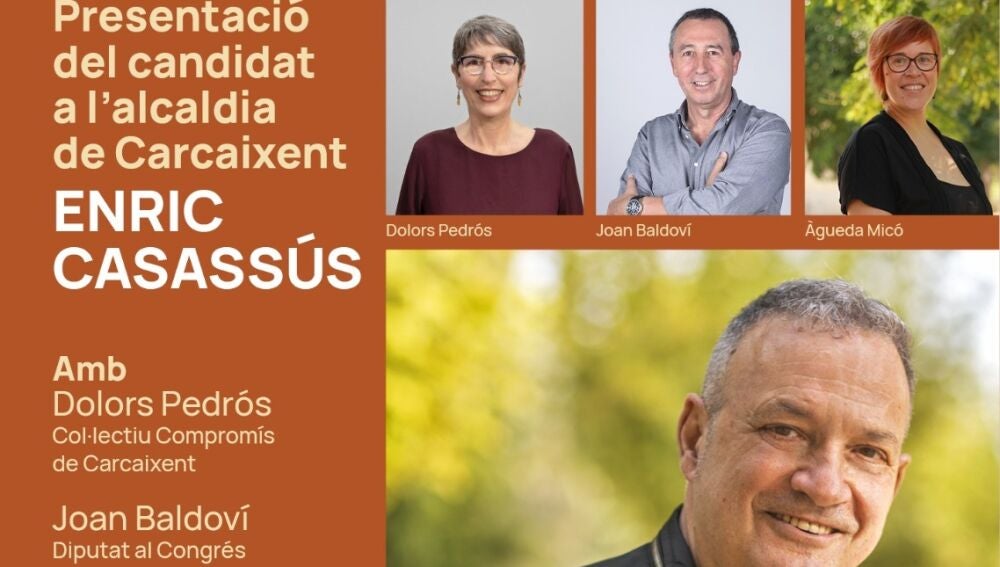 Hoy viernes el colectivo Compromís por Carcaixent va a dar el pistoletazo de salida a la campaña electoral con la presentación de su candidato a la alcaldía, Enric Casassús, quién fue elegido por unanimidad en asamblea cuando el actual alcalde de Carcaixent, Paco Salom, anunció que no presentaría su candidatura a las elecciones de 2023.