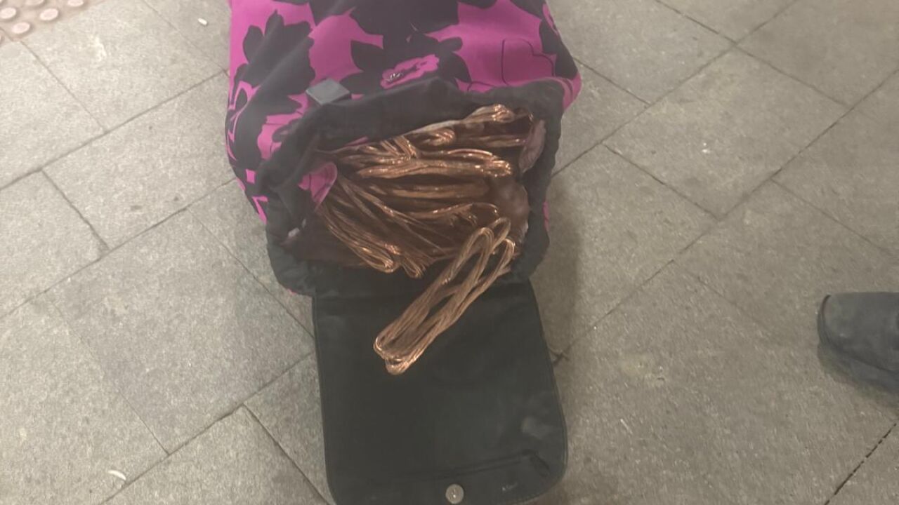 La Policía Local de Algemesí ha detenido a dos hombres como presuntos autores del robo de 100 kilogramos de cobre sustraídos de la infraestructura del AVE. Los detenidos, de 40 y 42 años y vecinos de Silla, fueron interceptados a las 5.15 horas de la madrugada del martes 24 de febrero en las inmediaciones de la estación de tren de Algemesí, cuando transportaban una maleta con el material sustraído y herramientas de corte, entre ellas unas cizallas.
