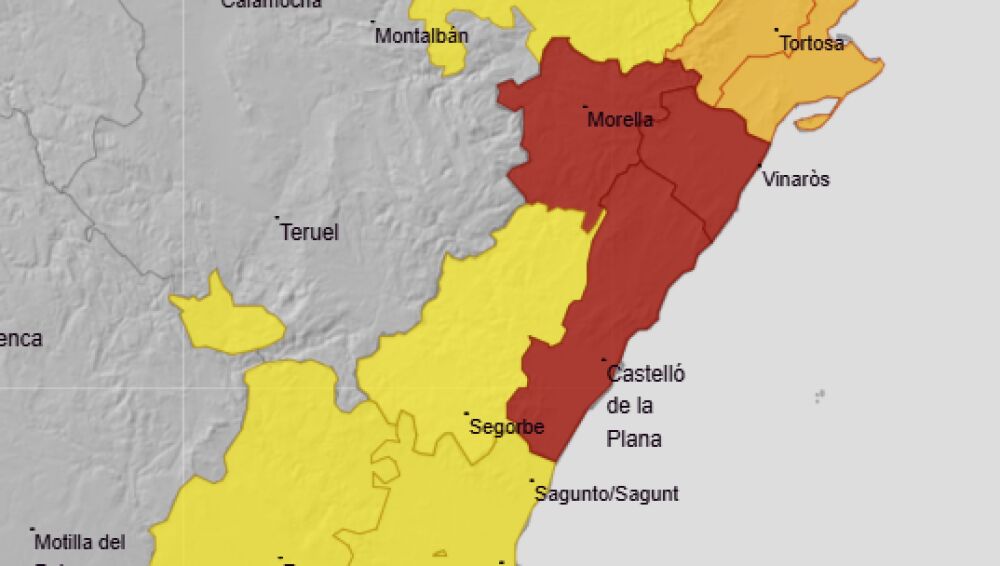 El resto de la provincia de Castellón, interior sur, se mantiene en alerta naranja.