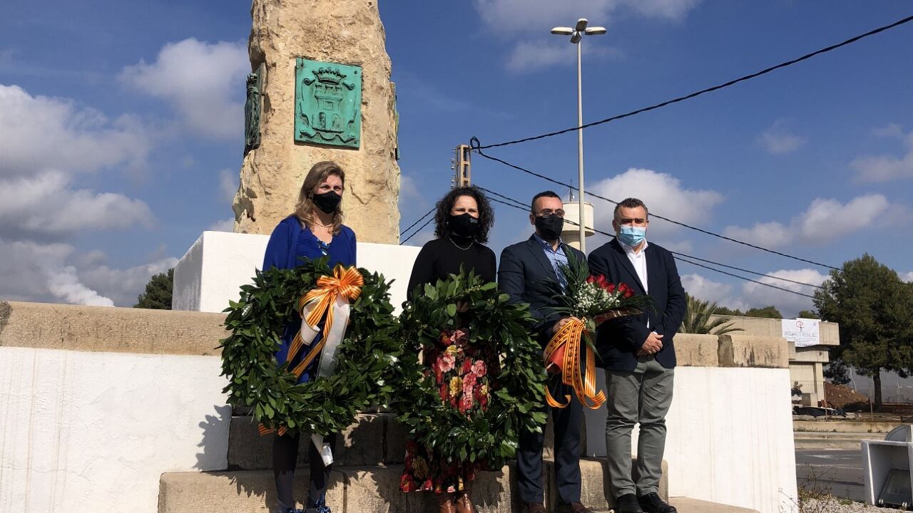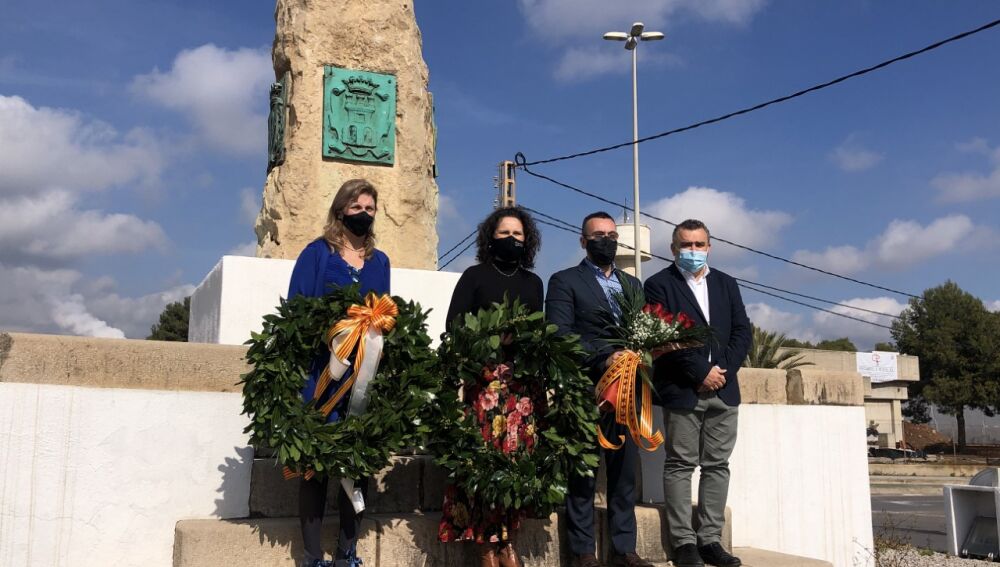 El homenaje se ha realizado frente al monolito que recuerda la resistencia vecinal. La alcaldesa, Merche Galí ha ejercido de anfitriones ante la primera edil de Castelló, Amparo Marco, y el alcalde de Vila-real, José Benlloch.