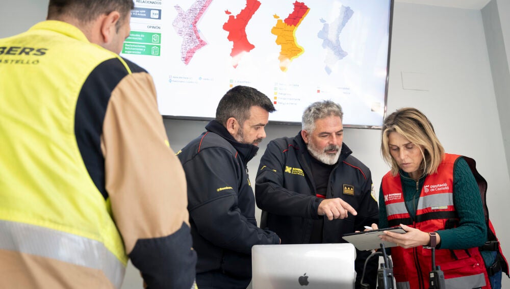 Marta Barrachina asiste a la reunión de coordinación en Oropesa tras presidir ayer la reunión operativa del Consorcio Provincial de Bomberos. Con motivo de la alerta roja, la Diputación de Castellón habilitó ayer viernes 13 de febrero un dispositivo que refuerza los cuatro parques de bomberos profesionales ubicados en Benicarló, Oropesa, Nules y Segorbe, así como activó de efectivos de forma presencial en los cinco parques de Bomberos voluntarios en Onda, Lucena del Cid, Benassal, Morella y Atzeneta.