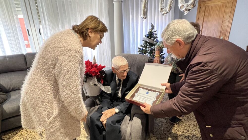 Hasta su domicilio se ha desplazado la representación municipal para entregar como obsequio de reconocimiento a Manuel una placa conmemorativa y una flor de Pascua, regalo tradicional en estas fechas, ante la presencia de sus familiares.