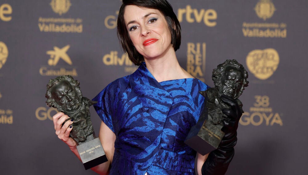 La directora y guionista Estibaliz Urresola posa con los dos premios conseguidos por '20.000 especies de abejas' | EFE