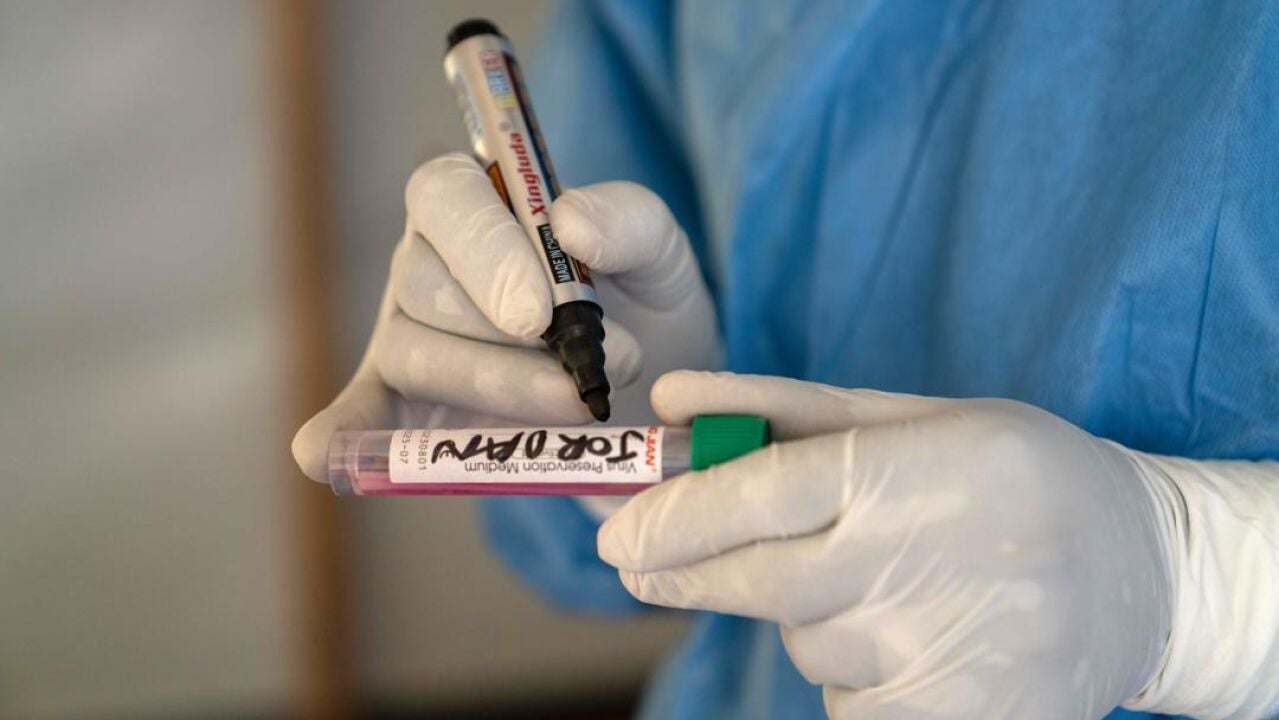 Un miembro del personal médico etiqueta una muestra de mpox tomada de un paciente en el Centro de Salud de Munigi, en Munigi, República Democrática del Congo, el 19 de agosto de 2024. EFE/EPA/Moise Kasereka | Agencia EFE