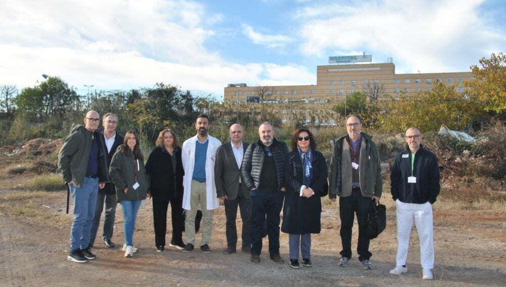 Un equipo técnico de la Dirección General de Gestión Económica e Infraestructuras, encabezado por la subdirectora general de Infraestructuras, Juana Belmar, junto al gerente del Departamento de Salud de Castellón, Raúl Ferrando, y responsables de la empresa adjudicataria, inspeccionó las parcelas y sus lindes con el hospital actual.