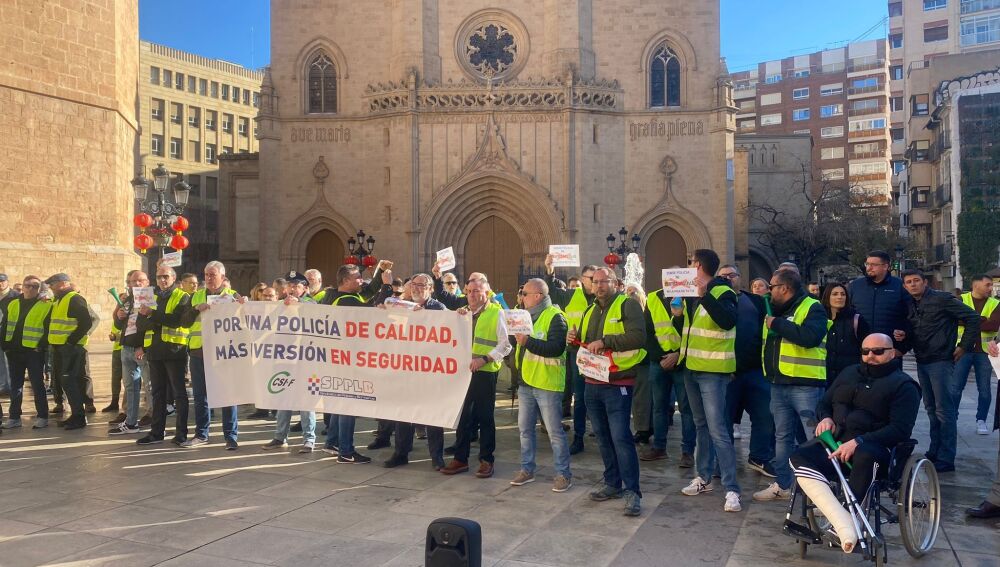 Representantes de la Central Sindical Independiente y de Funcionarios (CSIF) y del sindicato de policías y bomberos SPPLB se han concentrado este jueves en la plaza Mayor de Castellón para denunciar las deficiencias en la gestión y en la organización de la entidad y exigir medidas urgentes e inversiones que permitan mejorar las condiciones de la Policía Local de Castellón.