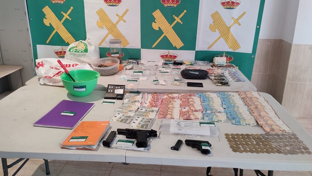 En el registro efectuado en la vivienda se ha intervenido 118 gramos de marihuana, 33 gramos de cocaína, 28 gramos de cristal, 16 pastillas de metanfetaminas además de 2000 euros en efectivo, 2 básculas de precisión, 2 pistolas de fogueo y 2 vehículos. La actuación ha sido realizada por componentes del Puesto de la Guardia Civil de Nules.