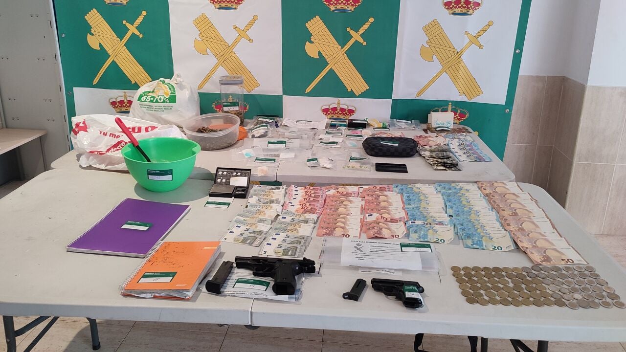 La Guardia Civil ha investigado a un hombre y detenido a un hombre y una mujer como presuntos autores de un delito de tráfico de drogas, además se han incautado, diversas sustancias estupefacientes, 2 básculas de precisión, 2000 euros en efectivo, 2 pistolas de fogueo y dos vehículos.