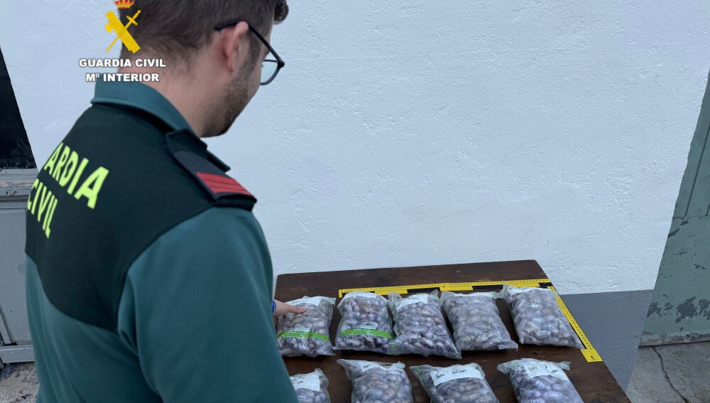 Durante la inspección del vehículo, los guardias civiles encontraron tres bolsas conteniendo dosis de hachís comúnmente conocidas como bellotas en el asiento del copiloto. Posteriormente los agentes realizaron una batida y a unos 200 metros se hallaron 6 bolsas de las mismas características a las encontradas en el turismo.