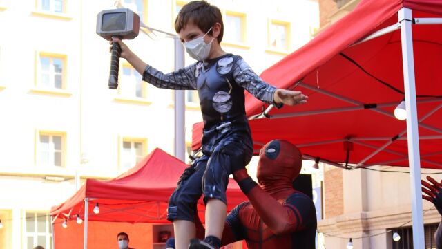 En la feria se pudieron ver personajes de animación como Deadpool, Wonder Woman, Harley Quinn, Thor, Spiderman, Miles Morales, Linterna Verde, Bruja Escarlata, R2-D2, Rey de Star Wars... Todos ellos a disposición de los asistentes para poder fotografiarse con ellos y disfrutar de un buen rato de cultura comiquera.