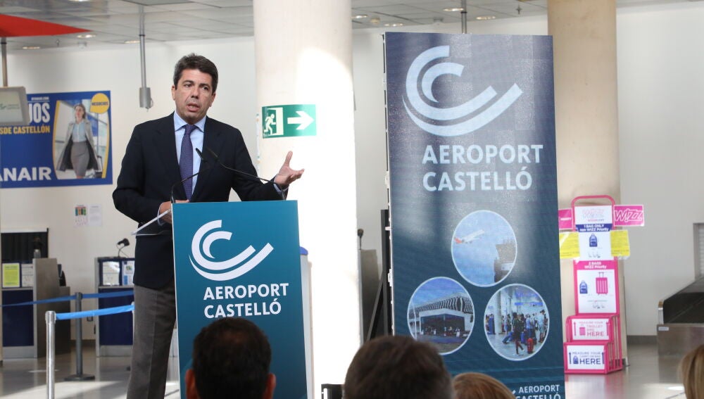 El president de la Generalitat, Carlos Mazón, ha destacado que el aeropuerto de Castellón tiene como objetivo incrementar el número anual de pasajeros hasta superar el medio millón en el año 2026.