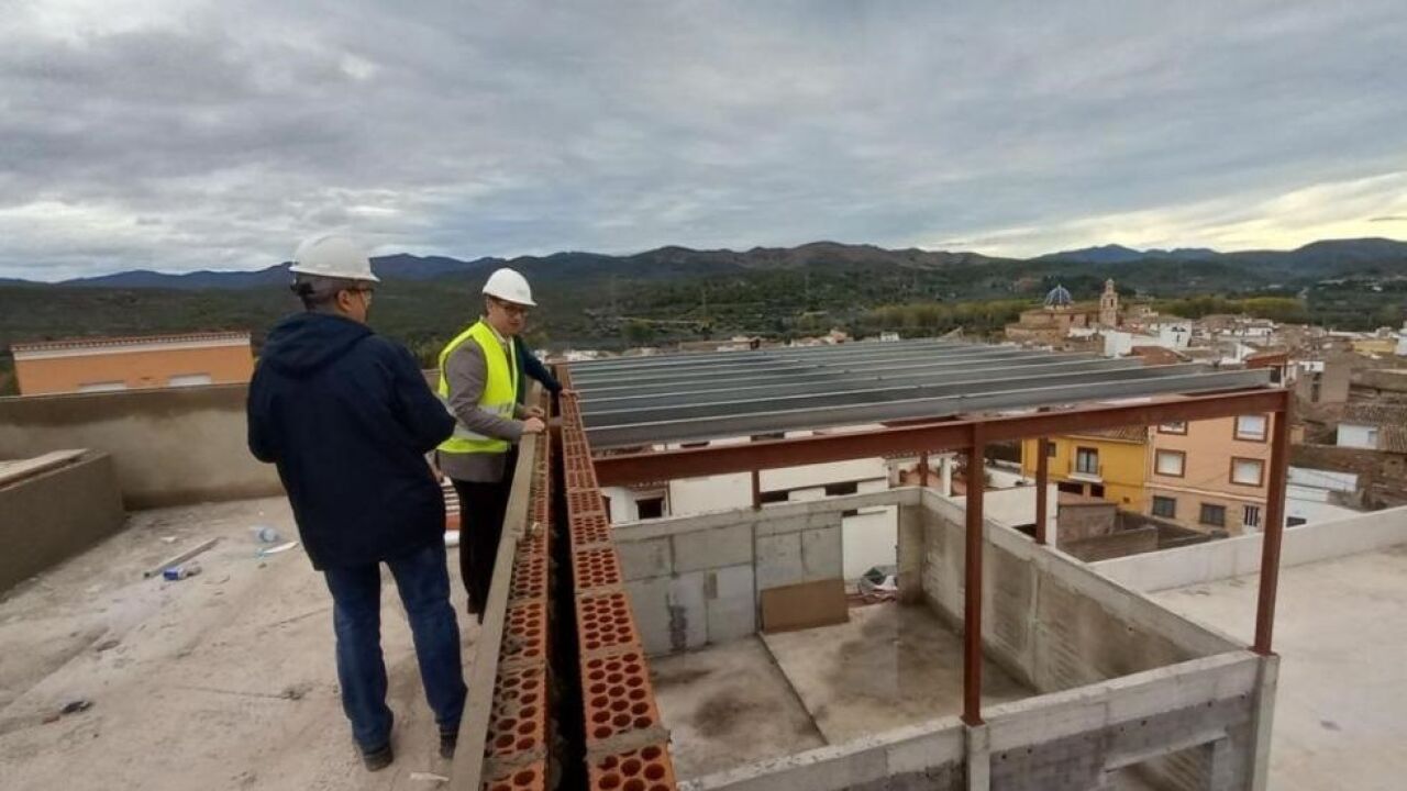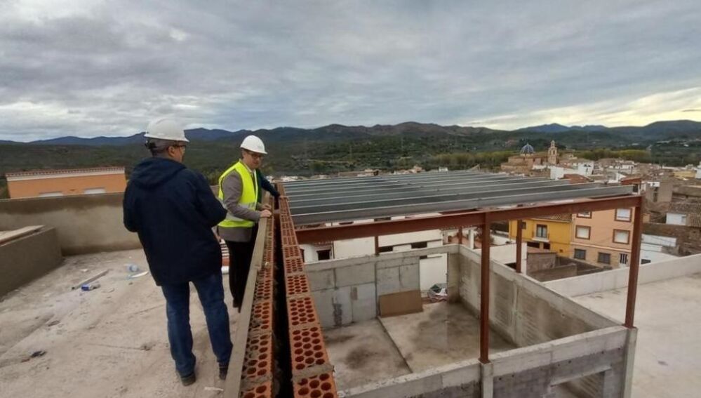 El director general de Infraestructuras Educativas, Víctor Garcia, y el alcalde de Soneja, Benjamín Escriche, junto a la comunidad educativa del CEIP San Miguel Arcángel, han comprobado el avance de las obras de construcción del nuevo colegio de este municipio de El Alto Palancia, actuación en la que la Conselleria de Educación invierte 4,7 millones de euros y que será una realidad pera el inicio del próximo curso.