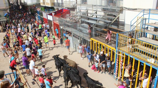 La jornada de este lunes también ha estado protagonizada por los actos taurinos, en este sentido los más pequeños han podido presenciar el espectáculo de trashumancia patrocinado por la Peña El Bou; y para la tarde se exhibirá un bou per la vila de la Ganadería Urcola que también patrocina la Peña El Bou.