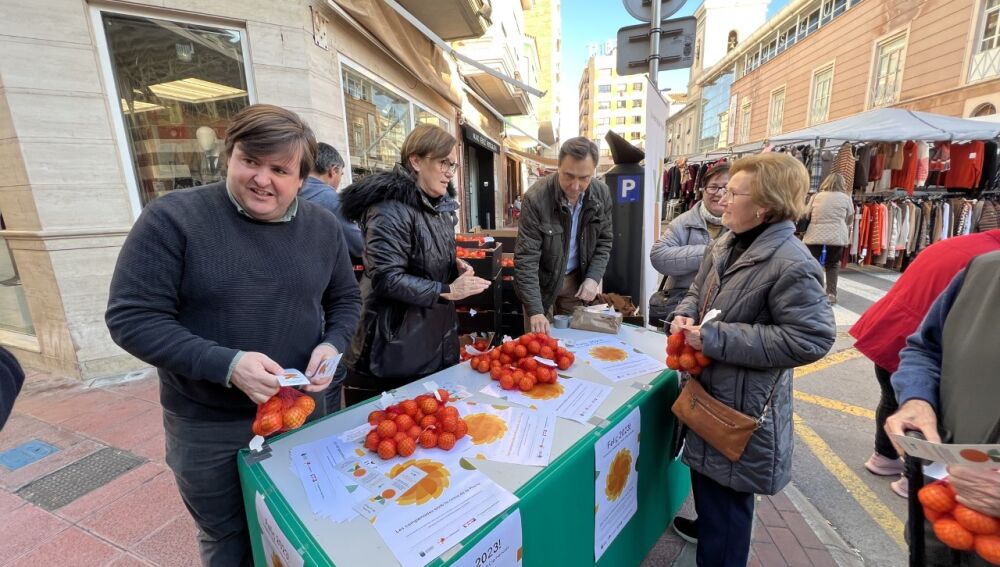 El Ayuntamiento de Borriana ha repartido esta mañana en el mercado exterior de los martes más de 500 mallas de medio quilo de clemenules para promover que los gajos de clementina, sean los protagonistas en las mesas valencianas para despedir el 2022.