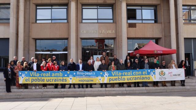 El Ayuntamiento de Vila-real ha guardado cinco minutos de silencio en solidaridad con el pueblo ucraniano y en defensa de la paz con motivo del primer aniversario de la guerra de Rusia contra Ucrania.