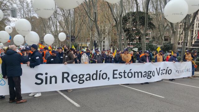 Para los regantes del Camp d’Elx la principal reivindicación en la movilización celebrada en la capital de España ha sido que el Gobierno central dé marcha atrás en su decisión de incrementar los caudales ecológicos en la cabecera del Tajo-Segura porque de lo contrario, han insistido, a medio plazo sería el fin de ese trasvase para regadío.