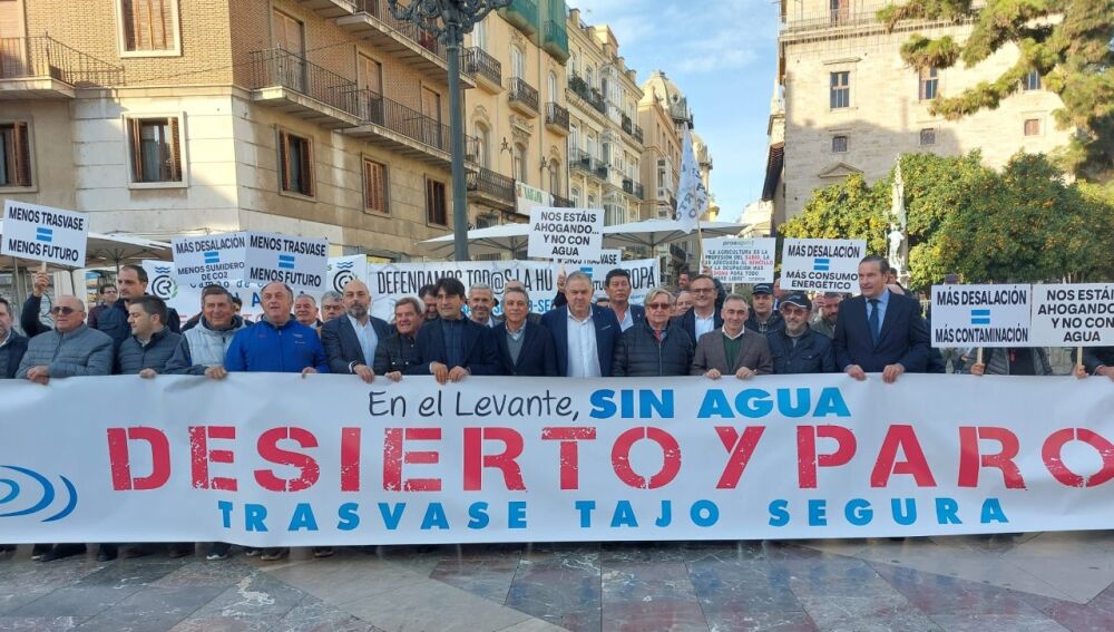 Concentración de agricultores junto al Palau de la Generalitat para exigir el mantenimiento del trasvase Tajo-Segura. | Onda Cero Elche