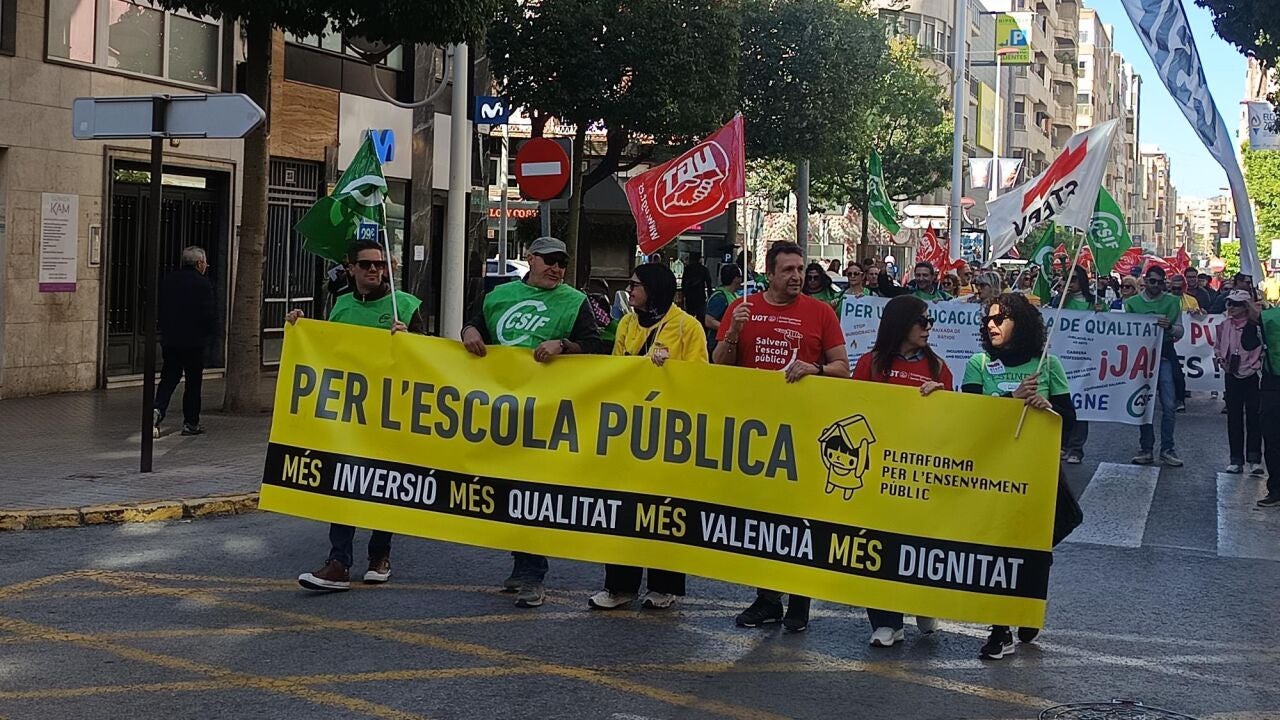 El valenciano en la educación pública ha sido una de las reivindicaciones de la comunidad educativa que se han escuchado con fuerza este martes en Elche, en Elda y en otros puntos de la provincia y del conjunto de la Comunitat Valenciana.