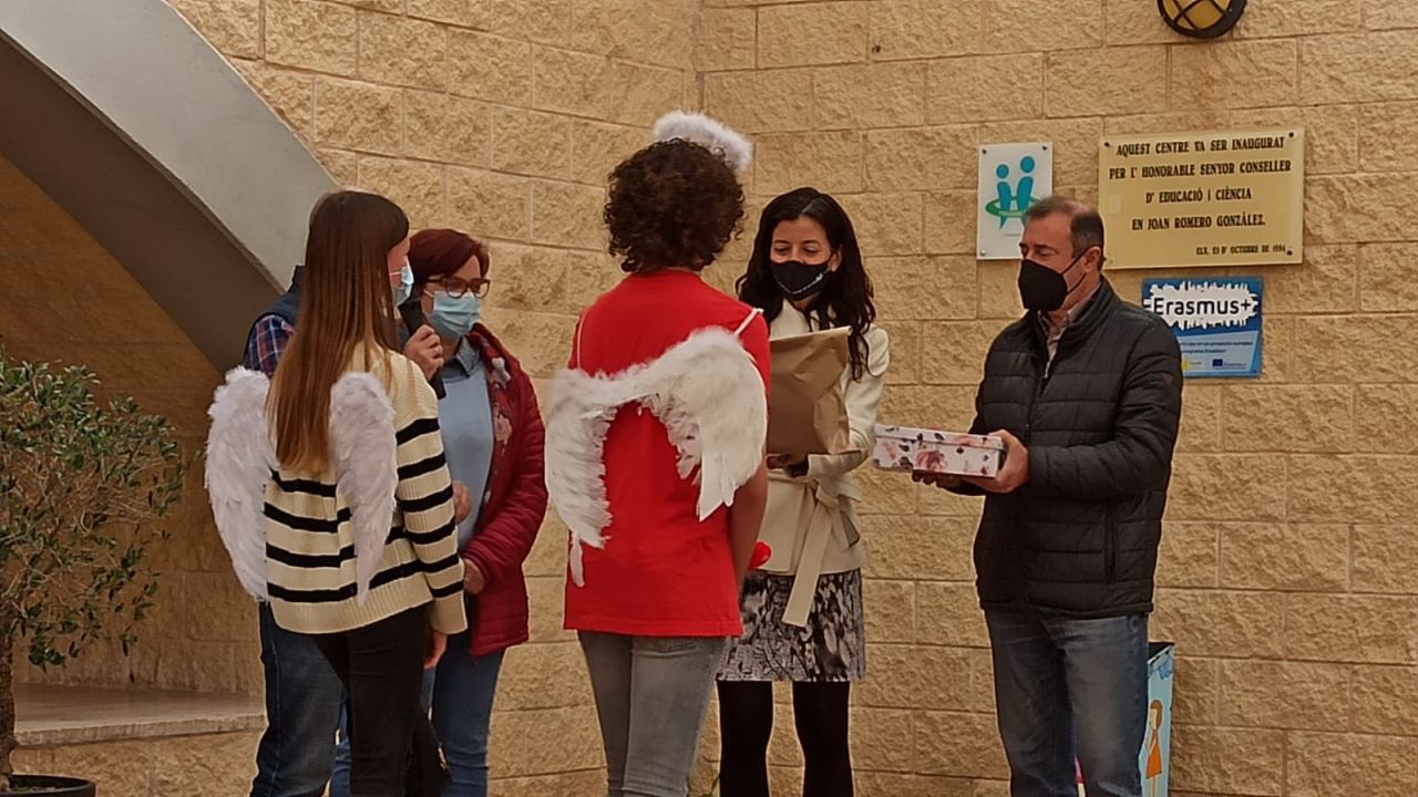 Han sido 159 los alumnos de FP Básica,ESO, Bachillerato y alumnos del Centro de Menores Baix Vinalopó adscrito al IES Cayetano Sempere, los que han escrito cartas que han sido entregadas este lunes por alumnos de Artes Escénicas del instituto al presidente y la secretaria de Asociación por los Derechos y Bienestar de Ancianos en Residencias (Adbar), Enrique Aznar y Ester Pascual, respectivamente.