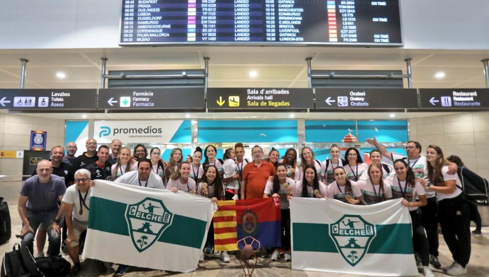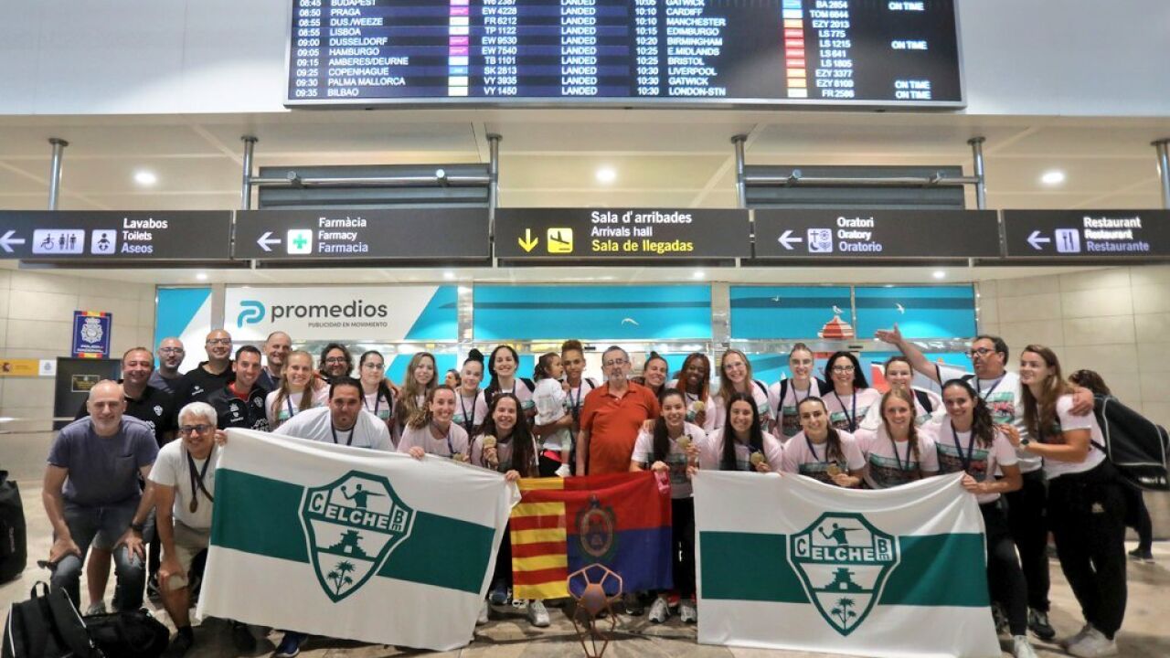 La plantilla del Atticgo CBM Elche, a su llegada al aeropuerto tras conquistar la EHF European Cup en Eslovaquia. | Club Balonmano Elche