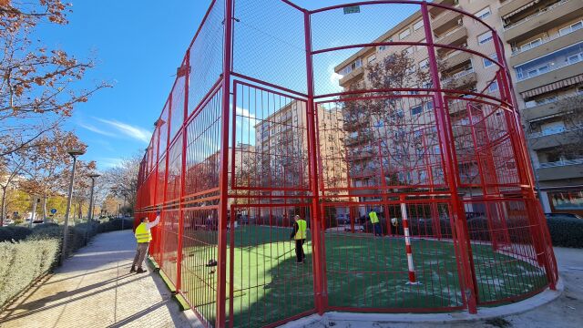evitando así que se puedan producir accidentes entre los más pequeños. Estos trabajos se han ejecutado tanto en la valla de torsión como en las diferentes barras metálicas que componen la parte baja de la cancha, que es donde se reciben los mayores golpes al jugar.