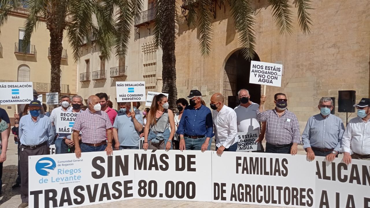 Los regantes del Camp d’Elx se han echado este sábado a la calle en protesta por los recortes proyectados por el Ministerio para la Transición Ecológica en el trasvase Tajo-Segura del que en la provincia de Alicante se nutren para regadío más de 20.000 agricultores, agrupados en la Comunidad General Riegos de Levante, así como muchos municipios de las comarcas del Vinalopó cuyo consumo diario se abastece del agua procedente de la Mancomunidad de Canales del Taibilla. Entre los ayuntamiento que están en la citada mancomunidad se encuentran los de Elche, Santa Pola, Crevillent, Aspe, Hondón de los Frailes y Hondón de las Nieves.