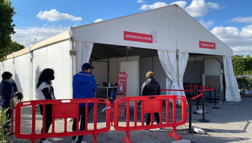 El punto de urgencias covid-19 instalado en el exterior del Hospital Universitario del Vinalopó ha atendido durante su primera semana de actividad a 1800 pacientes, lo que ha permitido reducir un 30% las visitas sin cita a los centros de salud adscritos al área de salud Elx-Crevillent.