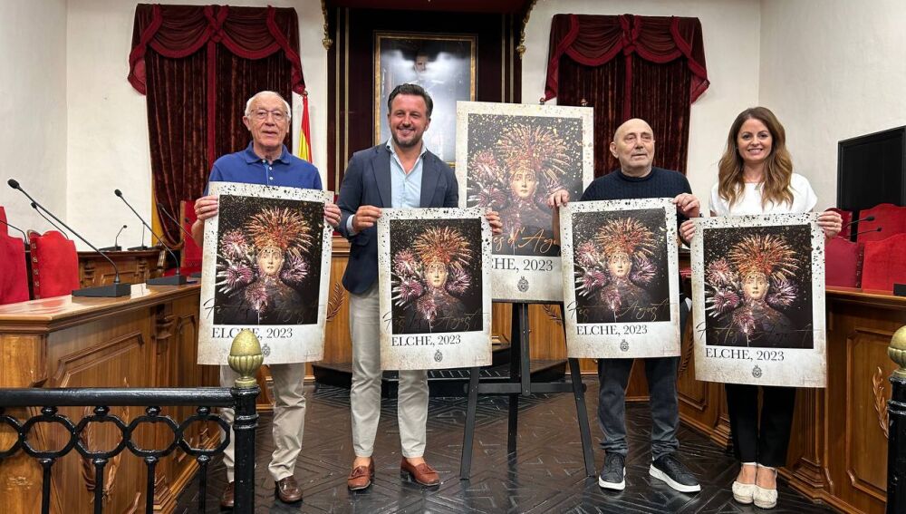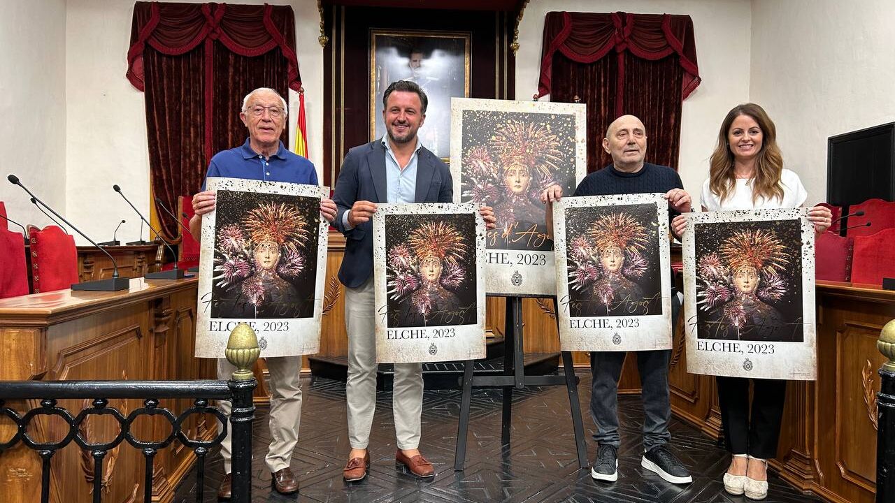 Las fiestas de Elche ya tienen el cartel anunciador de las fiestas de agosto de 2023. El autor es el artista ilicitano Antonio Mora, quien ha presentado esta mañana su obra ante la corporación municipal y representantes de las entidades festeras, culturales y sociales de la ciudad. La edil de Festejos, Inma Mora, ha puesto en valor el cartel como la imagen protagonista de las fiestas en honor a la patrona de Elche, la Virgen de la Asunción, quien además este año destaca en una obra en la que también aparece la Nit de l’Albà.