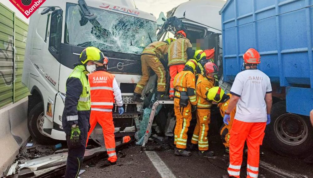 Una persona fallecida y cuatro heridas. Este ha sido el balance de un grave accidente de circulación ocurrido esta mañana en la autovía que une Alicante con Murcia en el que se han visto implicados dos camiones y dos coches.