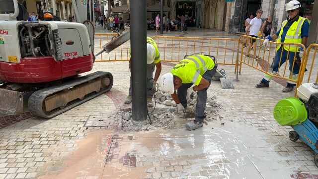 Con el objetivo que estén instaladas el próximo 7 de agosto, de cara a la celebración del pregón oficial de las fiestas patronales, el Ayuntamiento de Elche ha comenzado este lunes los trabajos de sustitución de las farolas de la Plaça de Baix por luminarias más eficientes y en consonancia con la nueva iluminación con la que va a contar la fachada del Ayuntamiento.