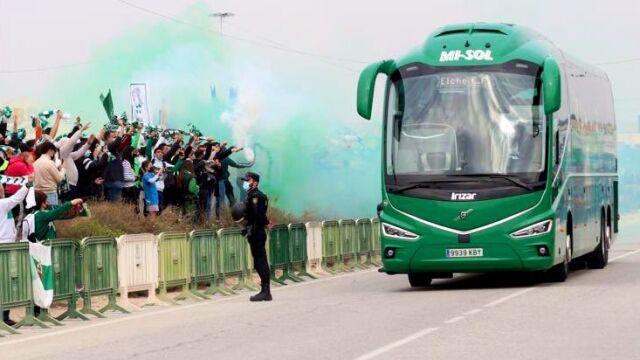 Ese día, la afición se concentró en los aledaños del estadio Martínez Valero para recibir al equipo en una acción convocada días antes.