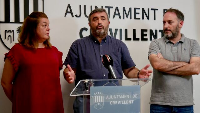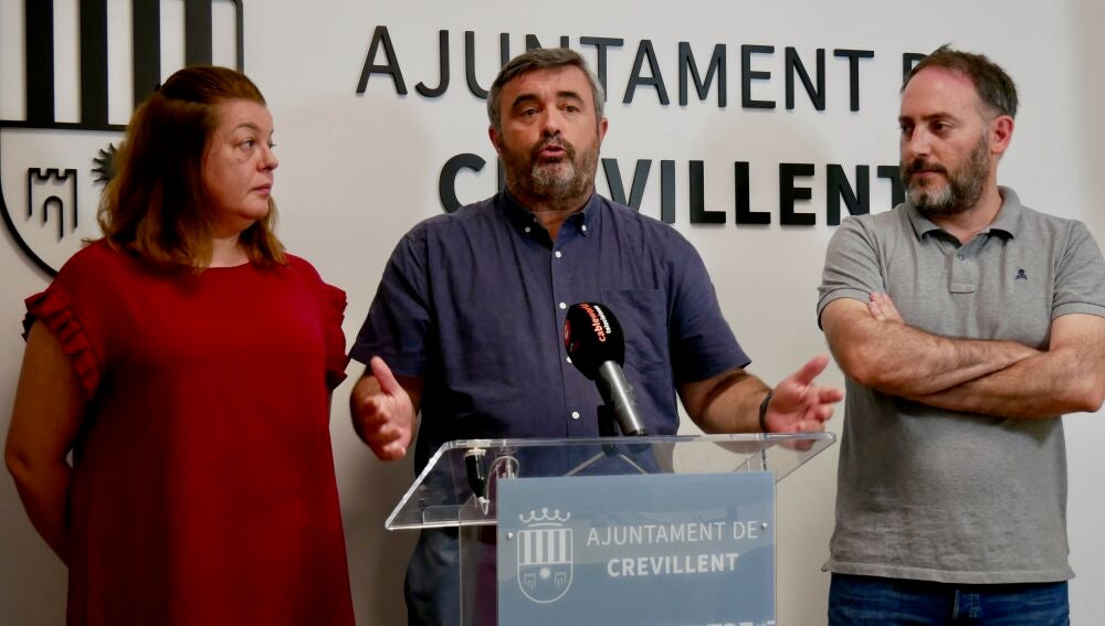 Gema Candelaria Asencio, concejala de Sanidad; José Manuel Penalva, Alcalde; y Josep Candela, concejal de Protección Ciudadana y Emergencias, durante el anuncio del servicio de ambulancias 24 horas. | Ayuntamiento de Crevillent