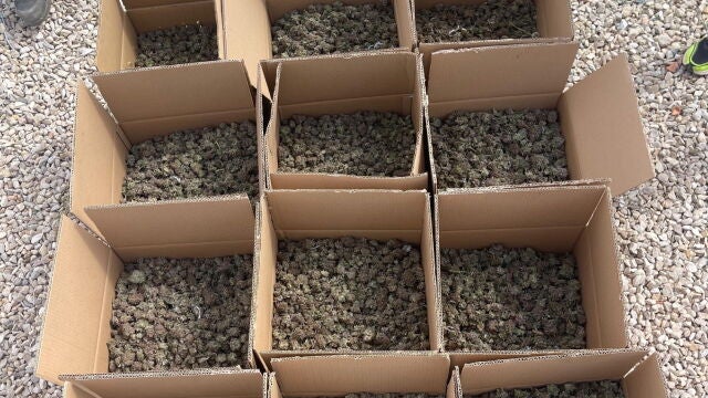 En la operación, desplegada a finales del pasado mes de marzo, se han intervenido de trece bolsas de rafia y siete de basura de grandes dimensiones con cogollos de marihuana, con un peso de más de 126 kilos.