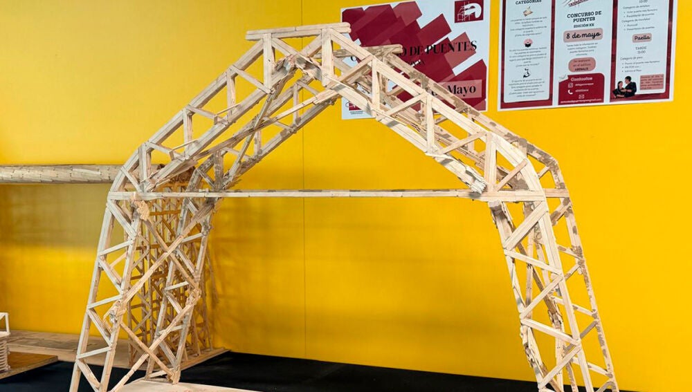 El primer premio del XX Concurso de Puentes hechos con palillos de helado de la Universidad Miguel Hernández de Elche (UMH)ha tenido este año doble ganador en la categoría de Peso. Dos maquetas han aguantado posadas sobre ellas placas que han sumado hasta 1.156 kilos.