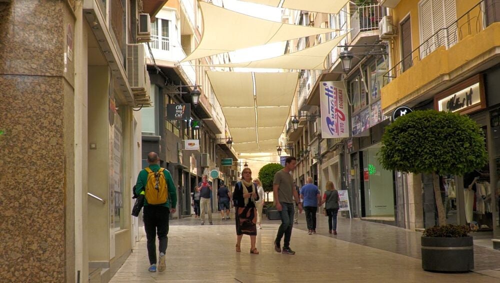 La calle Obispo Tormo, en el centro de casco histórico de Elche, se ha convertido en la primera vía en la que el Ayuntamiento ilicitano ha comenzado a instalar toldos-velas para ofrecer sobra en los meses estivales, tratando con ello de amortiguar los efectos de las altas temperaturas propias de esa época del año.