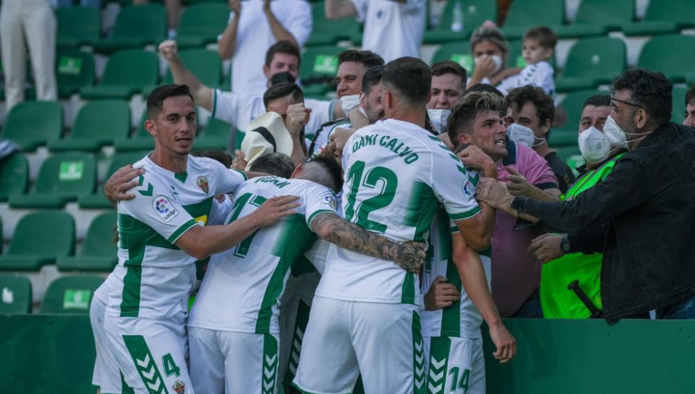 La afición franjiverde regresó al estadio Martínez Valero 447 días después de cierre obligado por culpa del peor enemigo, la pandemia de covid-19, y desde entonces se ha sucedido un ascenso heroico de la mano de José Rojo ‘Pacheta’ y una permanencia que pasará a la historia por el desenlace que se ha vivido en este 22 de mayo de 2021 con Fran Escribá en el banquillo.