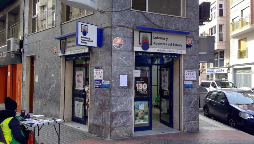 Administración de Lotería nº 10 de Elche que ha sellado el boleto premiado de la Bonoloto. | loteriasyapuestas.es