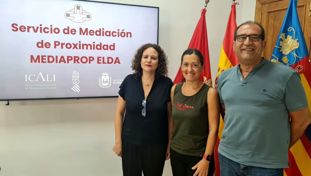 Elda contará con un servicio gratuito de mediación de proximidad (MEDIAPROP) a partir del lunes y estará ubicado en el Punto de Encuentro Familiar en la calle Paquito Vera,8. El concejal de Bienestar Social, David Guardiola, junto con las abogadas Catalina Alcázar y María Dolores Hernández, integrantes del equipo de coordinación Mediaprop ICALI.