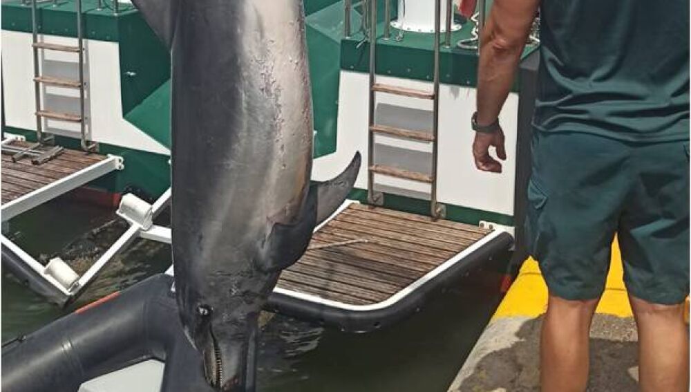 El servicio marítimo de la Guardia Civil recuperó este pasado sábado un delfín sin vida que apareció flotando en aguas cercanas a las playas de la pedanía de La Marina de Elche.