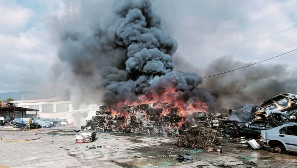 El incendio en un desguace de coches en Crevillent ha calcinado varios vehículos, si bien no se han registrado daños personales.