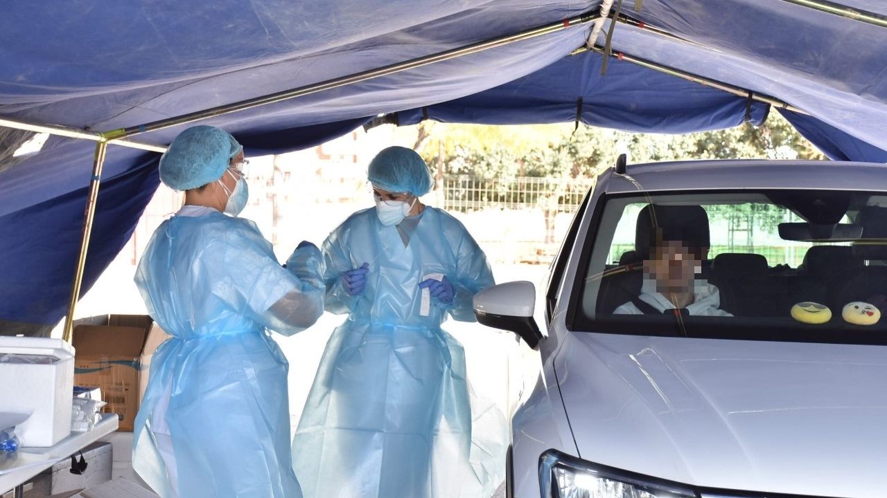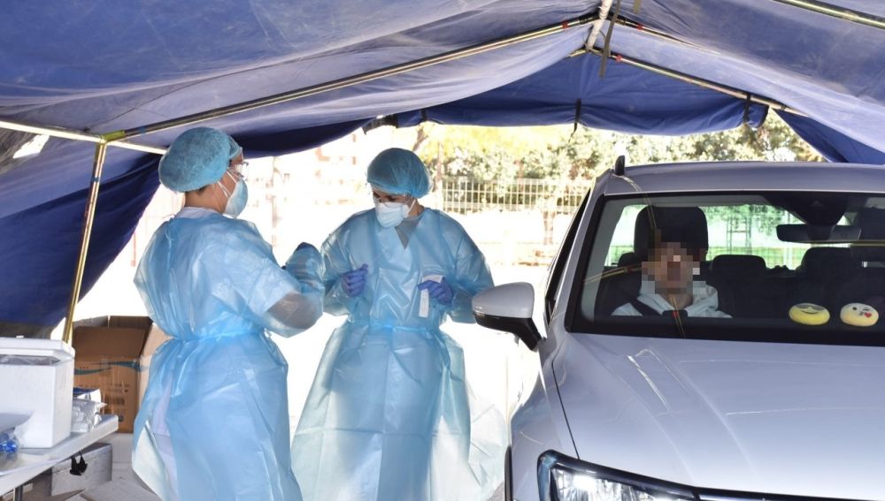 El Ayuntamiento de Elche y Salud Pública han instalado este lunes en el aparcamiento colindante a las pistas de atletismo del polideportivo de Altabix una carpa para la realización de test PCR de detección del coronavirus.