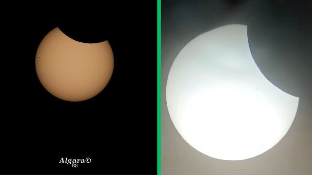 El eclipse parcial de Sol dejó imágenes espectaculares como las que acompañan esta noticia, que han sido tomadas por los ilicitanos Alejandro García en la pedanía costera de Los Arenalesdel Sol o Victoriano Canales desde el barrio Sector V de Elche.