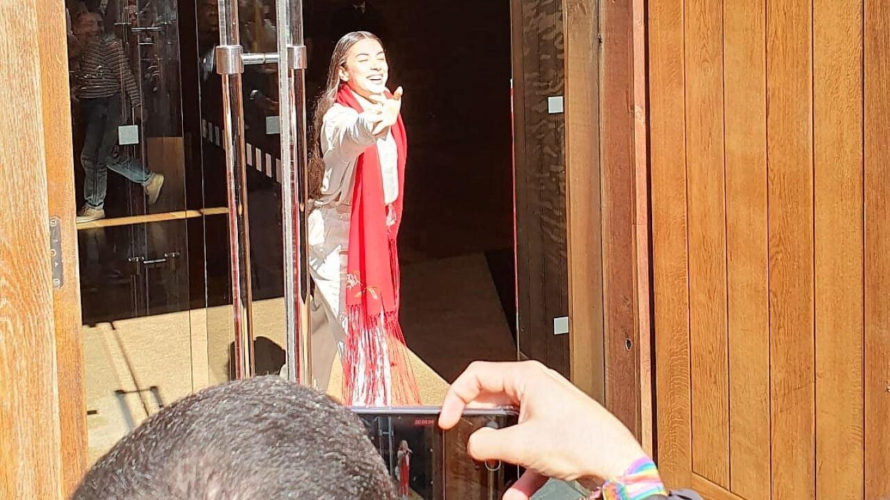 La artista de la pedanía de El Altet de Elche no va a estar sola. Hasta Liverpool se han desplazado sus padres y una de sus tías. También ha viajado hasta la capital británica una representación de la Unió de Festers del Camp d’Elx, encabezada por su presidente Andrés Coves, que esta mañana le han hecho entrega de un broche con la imagen de la Virgen de la Asunción, patrona de Elche. Lo han hecho aprovechando que la cantante ha salido del hotel en el que se aloja para saludar a los seguidores que allí se concentraba.