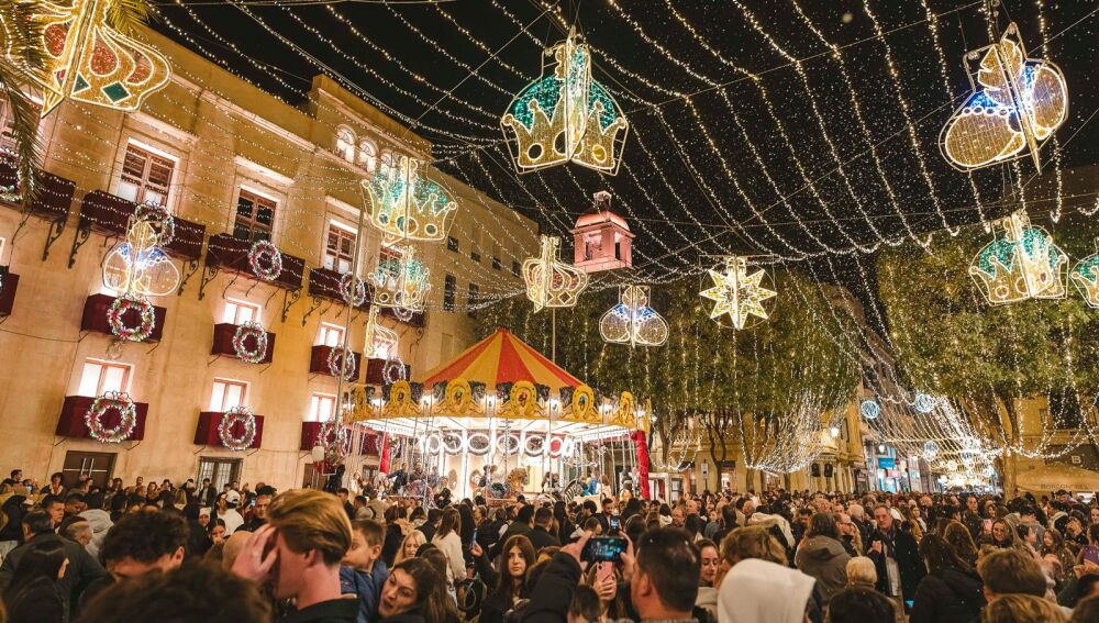 Tras ese acto en la Plaza de Baix, se vivió el encendido de las Coronas de los Reyes Magos que, a partir de ahora, van a ofrecer un espectáculo de luces con villancicos, con pases diarios a las 19:00 y a las 21:00 horas.