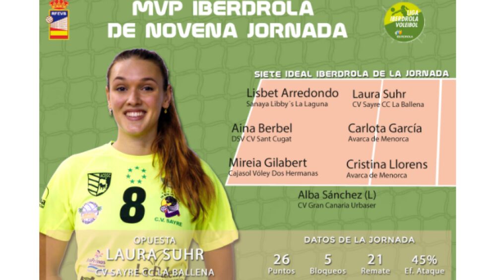 Mireia Guilabert ha sido elegida como una de las seis mejores jugadoras de la pasada jornada de la Liga Iberdrola, la máxima categoría del voleibol nacional. La colocadora ilicitana ha rayado a gran nivel en los dos últimos partidos, en los que ha vuelto a ser titular con el Cajasol Vóley Dos Hermanas de Sevilla, lo que le ha valido para estar entre las mejores del pasado fin de semana en la Superliga-1 femenina.