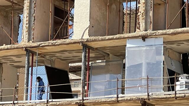 Un trabajador en el interior de las ruinas del viejo hotel de Arenales del Sol de Elche. | Onda Cero Elche