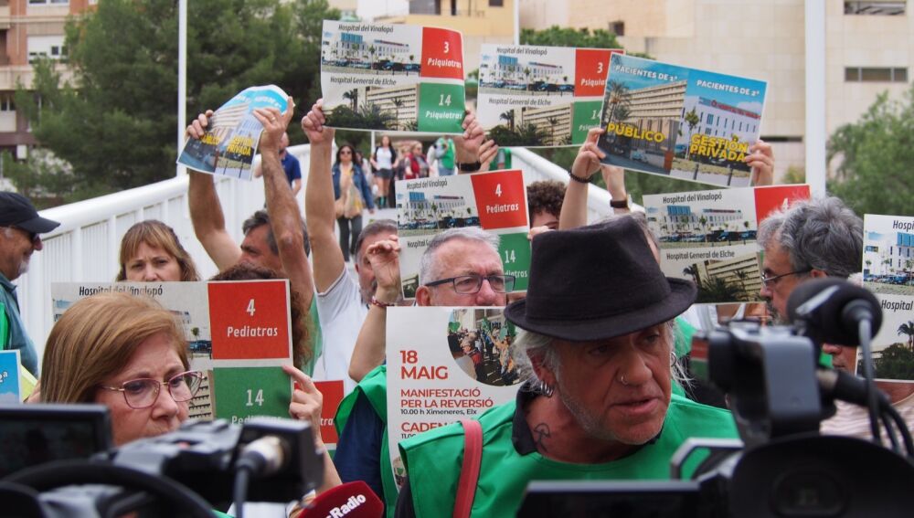 “No entendemos por qué de los veinticuatro departamentos de salud de la Comunitat Valenciana, solamente el nuestro se queda en manos de una empresa privada”, ha asegurado Paqui Ortiz, integrante de la plataforma y de la asociación de vecinos del barrio El Toscar de Elche, que también ha lamentado que en el área de salud encabezada por el Hospital Universitario del Vinalopó hay demorar de “hasta un mes” para acceder a una cita al médico de familia y de hasta “seis meses” en el caso de tener que acudir a algunos especialistas: “Teníamos cinco departamentos de salud con este tipo de gestión privatizada de la sanidad, la Generalitat Valenciana ha asumido la gestión pública de todos ellos excepto del nuestro; no entendemos ni compartimos que se quede una isla de la población con este modelo de gestión privada lo que nos convierte en ciudadanía de segunda frente a las personas que disfrutan de una sanidad cien por cien pública”, ha manifestado Ortiz.