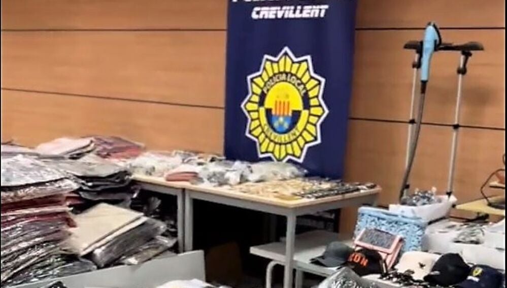 La Policía Local de Crevillent ha intervenido más de 7000 productos falsificados de 42 marcas en el marco de un operativo en el que se han inspeccionado dos naves industriales de la localidad y en la que han sido arrestadas dos personas a las que se atribuye un presunto delito contra la propiedad industrial.