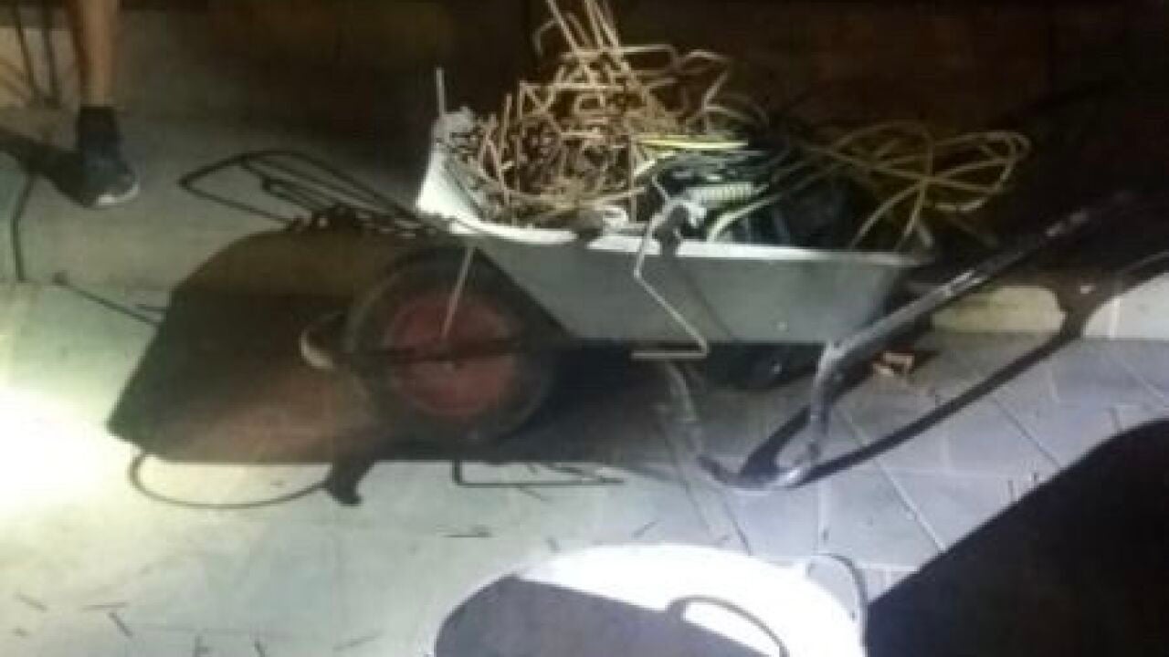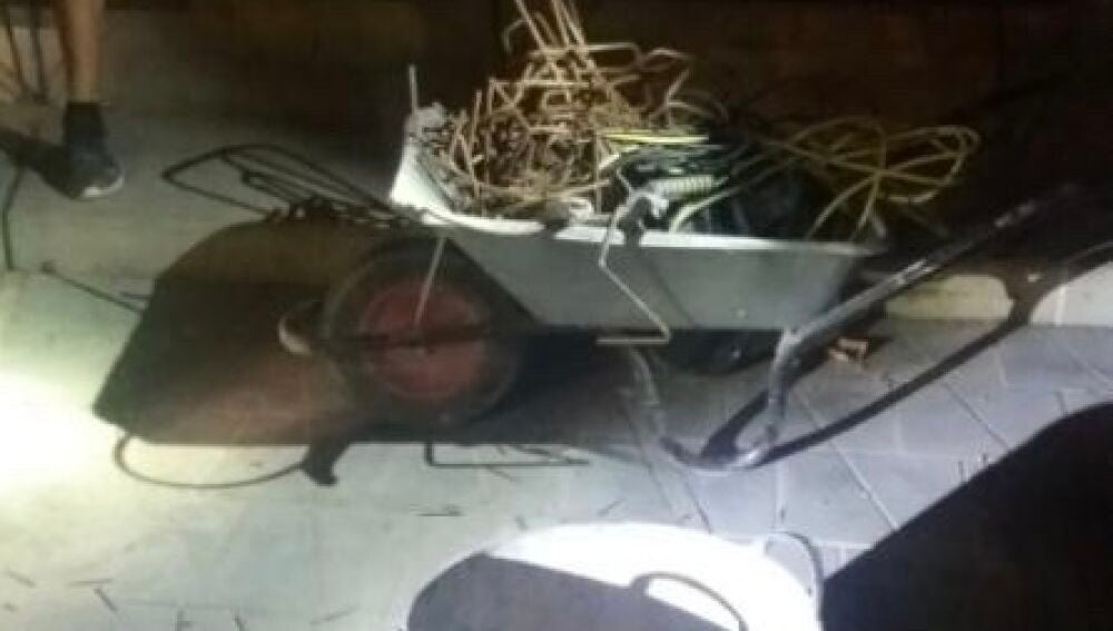 El detenido portaba una carretilla con ferralla y un capazo con dos alargadores enrollables y un compresor, por lo que decidieron acercarse e interrogarle ante las sospechas.