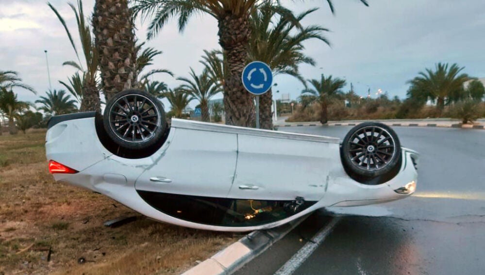 La Policía Local de Elche ha asistido a primera hora de este domingo un accidente de tráfico ocurrido en una de las rotondas de circulación de la Ronda Norte en el que se ha visto implicado un único vehículo que ha quedado volcado en la propia rotonda y cuyo conductor ha huido del lugar.